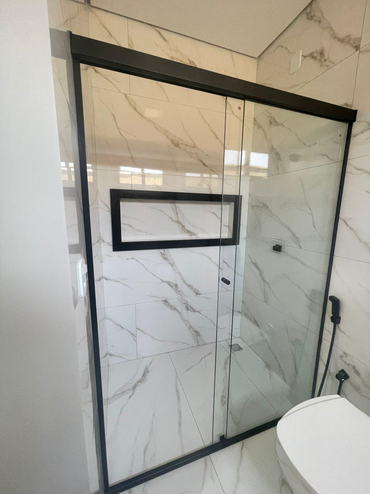 - Banheiro social com box, nichos em LED